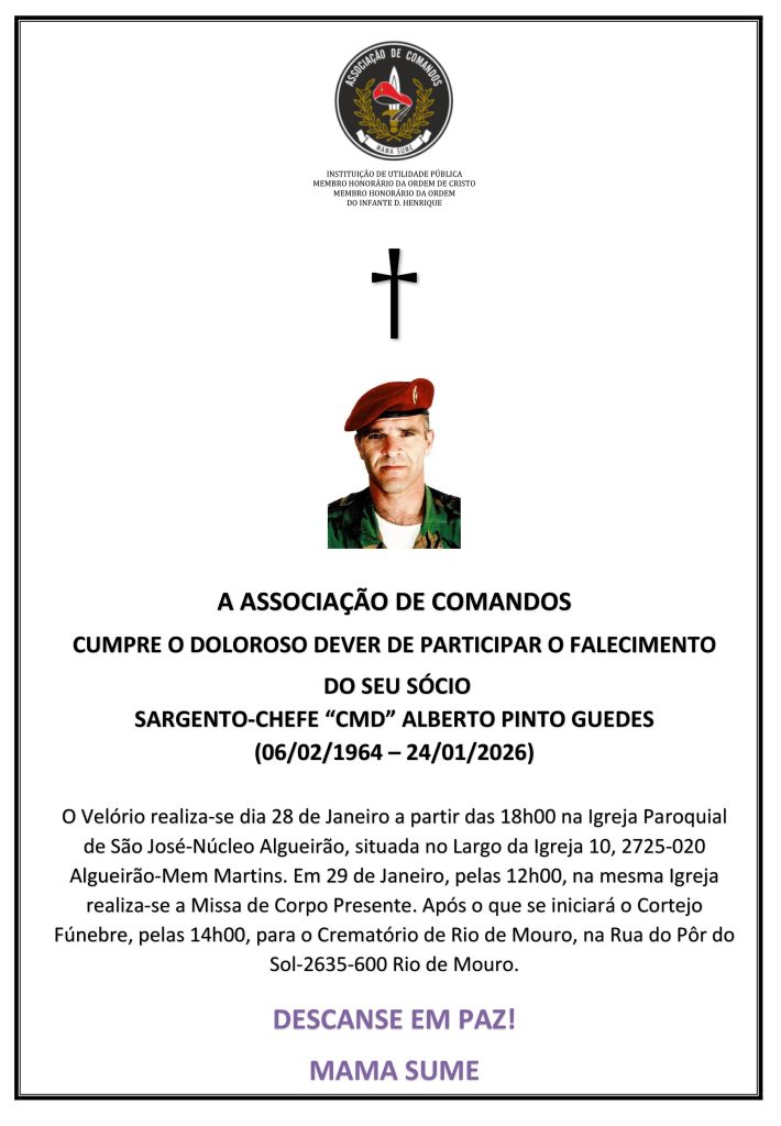 Categorias -Efemerides Artigos 2022 Artigos 2024 Artigos em Destaque Direcção Nacional Notícias LOJA ONLINE Autor do artigo Por comandos Data do artigo Janeiro 31, 2026 Sem comentários em LOJA ONLINE