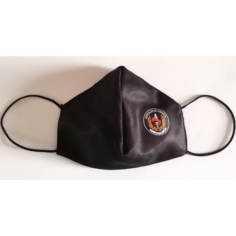 Máscara social de protecção individual bico de pato com emblema da Associação de Comandos estampado.